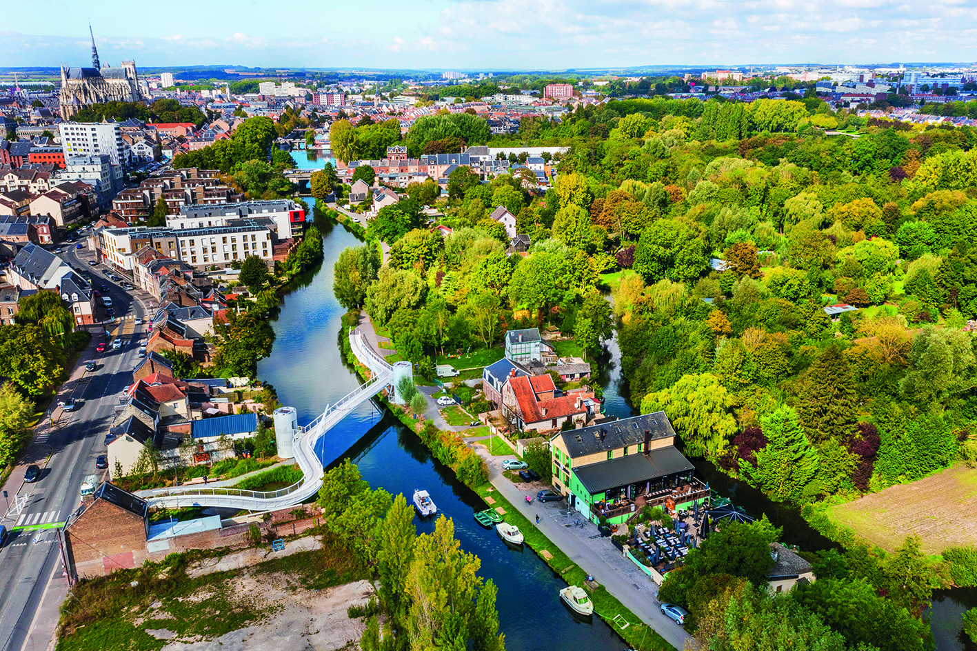 À Amiens, épicentre de la Vallée idéale, la nature exceptionnelle au cœur de la ville devient la clé du développement et n’est plus un simple faire valoir paysager. Après la passerelle L’Hortillonne en 2022, au design particulièrement soigné, de nouveaux liens avec l’eau se forment.