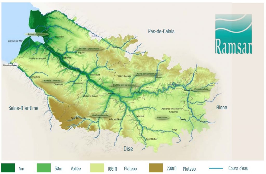 – une vallée labellisée Ramsar (zone humide d’importante internationale) pour sa tourbière et ses hortillonnages. Ce site classé s’étend sur 13 100 hectares et comprend la haute et moyenne vallée de la Somme et son principal affluent, l’Avre, ainsi que les marais et tourbières adjacents, sur un linéaire de près de 200 km soit l’un des plus vastes complexes tourbeux du nord-ouest de l’Europe. Le site se distingue par sa grande richesse écologique : une faune particulièrement riche et une concentration d’habitats et d’espèces rares et menacées. La vallée de la Somme a en outre une grande importance culturelle et historique. Les anciennes terrasses du fleuve abritent les toutes premières traces d’occupation du nord-Ouest de l’Europe par l’Homme.